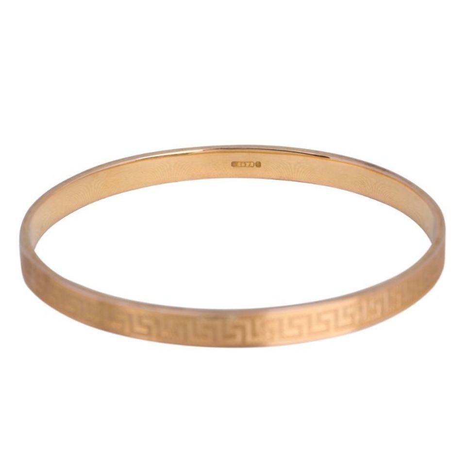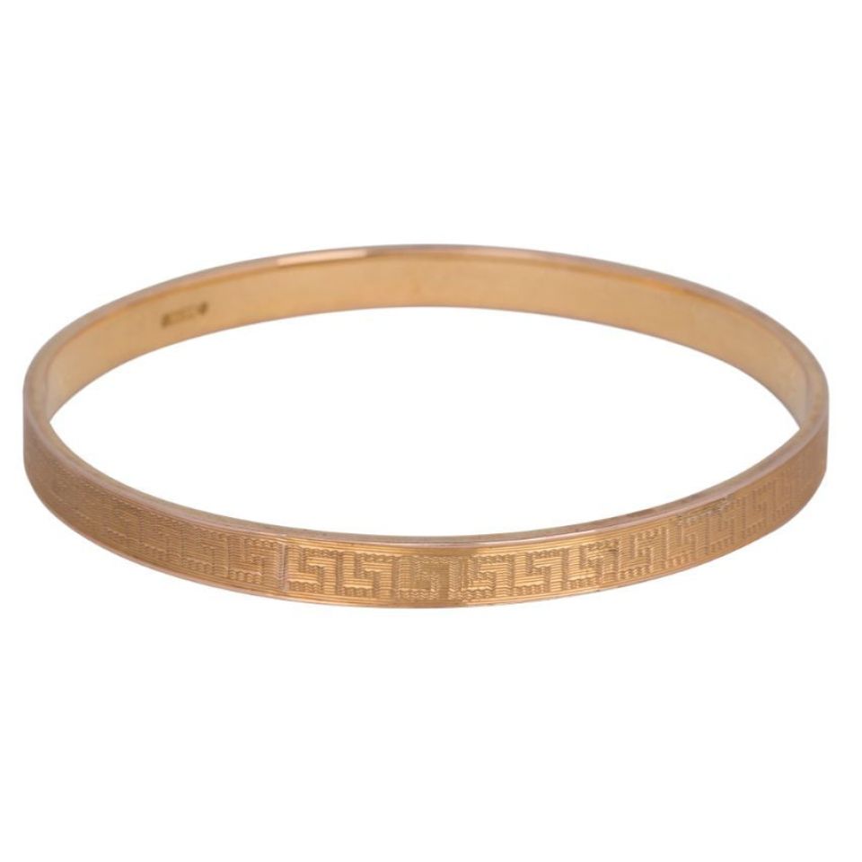 Original Art Deco 9ct Yellow Gold Flat Round Bangle with a Greek Key Engraved Pattern c 1920.