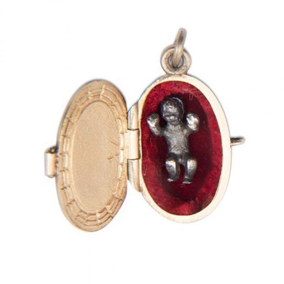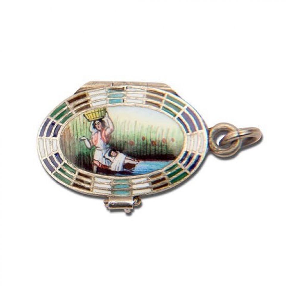 Very Collectible Original Art Deco Egyptian Revival Silver & Enamel Moses Basket Charm c1920