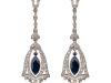 Art Deco Handmade Platinum Diamond & Marquise Sapphire Earrings