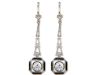 Original Art Deco Antique 18ct White Gold Onyx & Diamond Drop Earrings