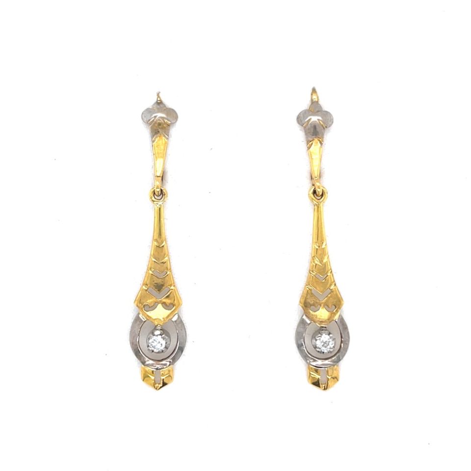 Art Deco Handmade 18ct Yellow & White Gold Diamond Drop Earrings.
