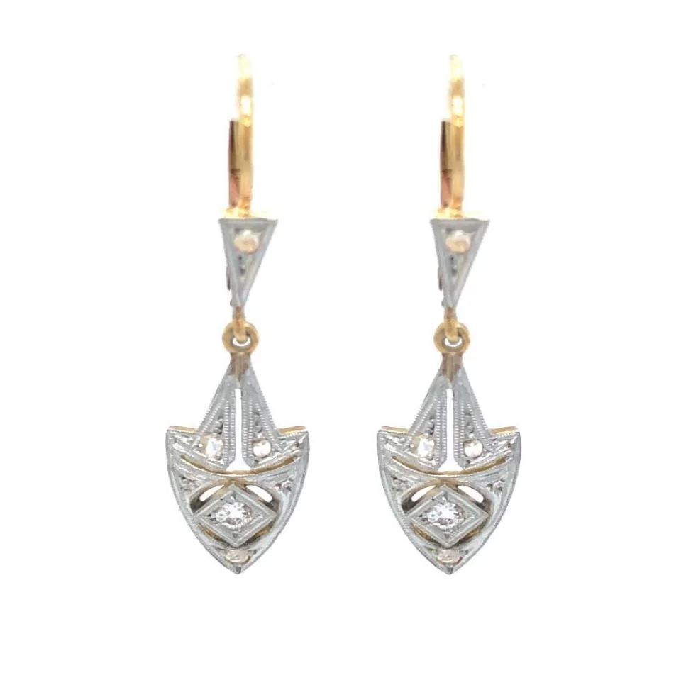 Art Deco Handmade 18ct Yellow Gold & Platinum Diamond Earrings.