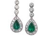 Original Art Deco Platinum & 18ct White Gold Pear Shaped Emerald & Diamond Earrings