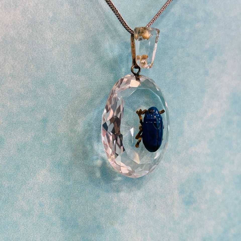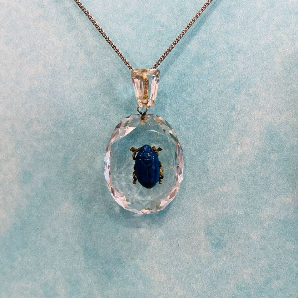 Original Art Deco Rock Crystal Scarab Pendant.