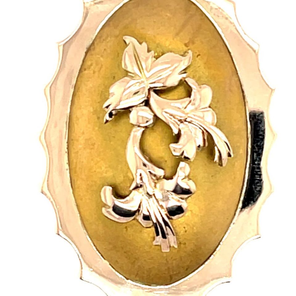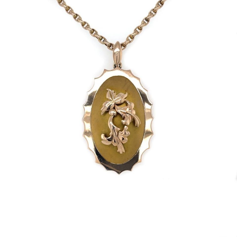 The locket is set in Rose gold and Yellow gold with a floral display on the front.