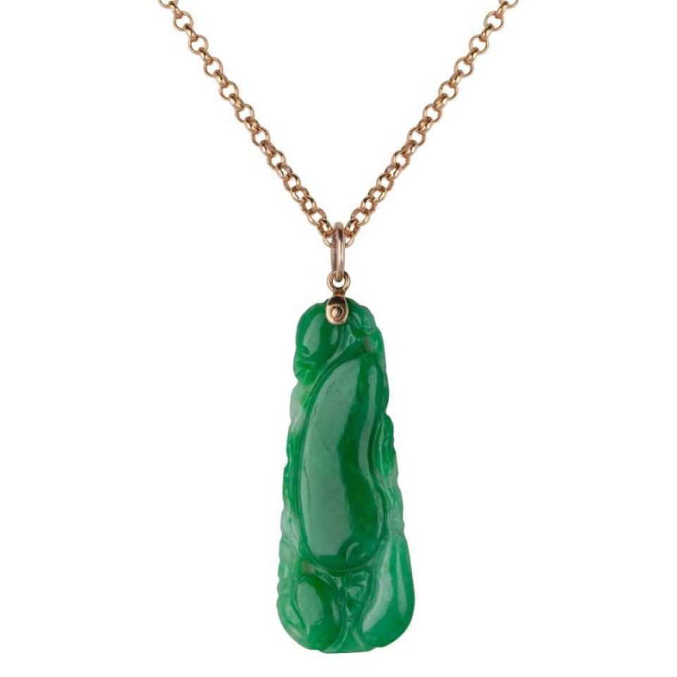 Beautifully Hand Carved Art Deco Jadeite Drop Pendant Circa 1940.