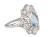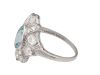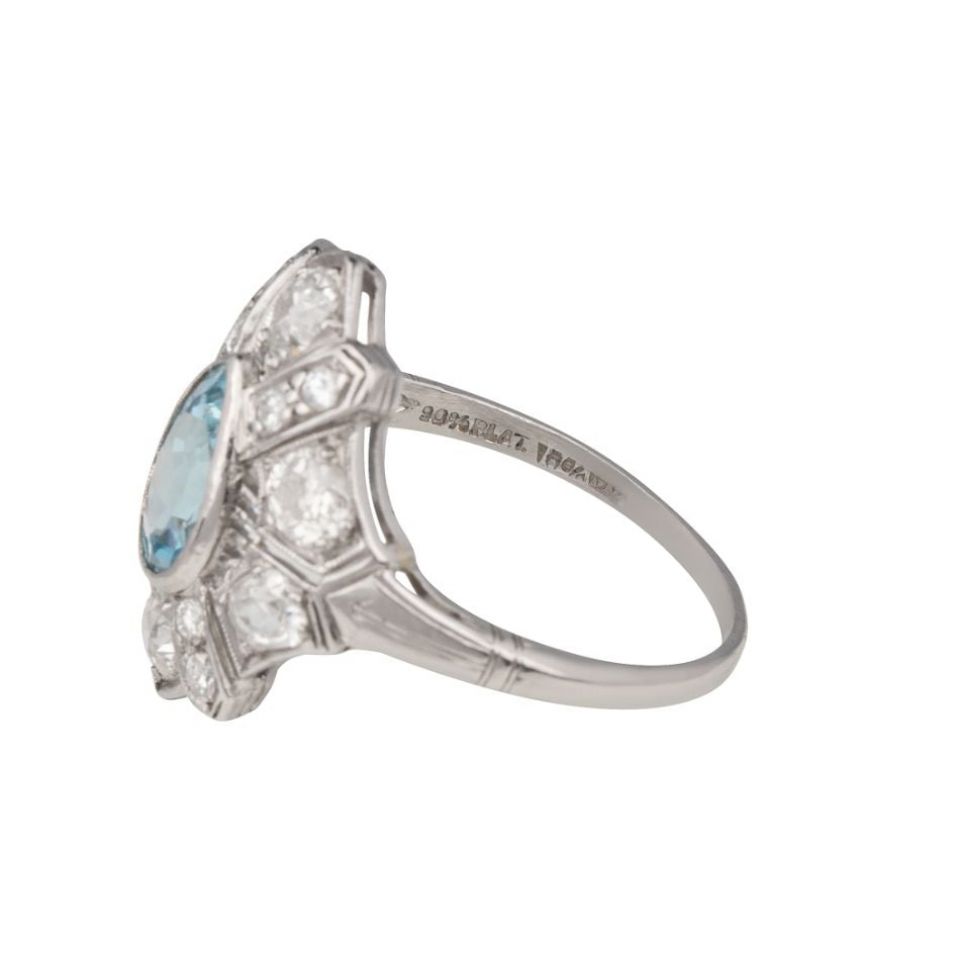 Amazing Original Art Deco ring made in Platinum and set with a pear shaped Aquamarine, surrounded by old cut Diamonds.