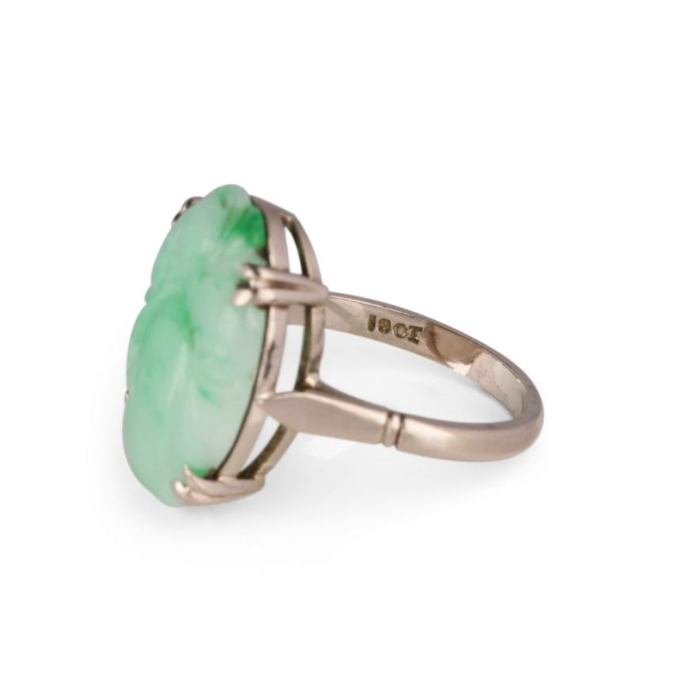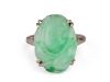 Art Deco 18ct White Gold Claw Set Carved Jade Ring