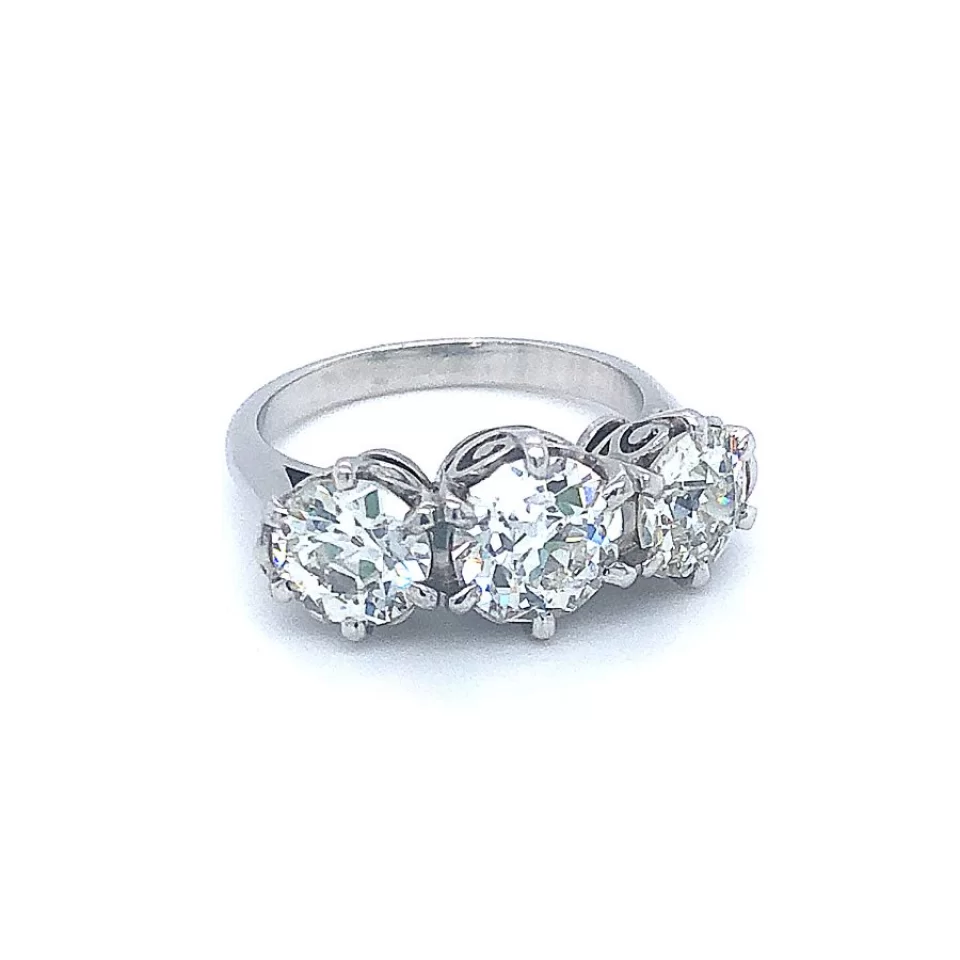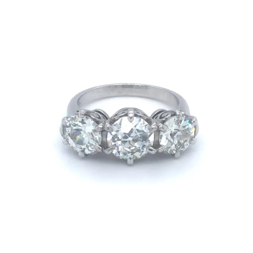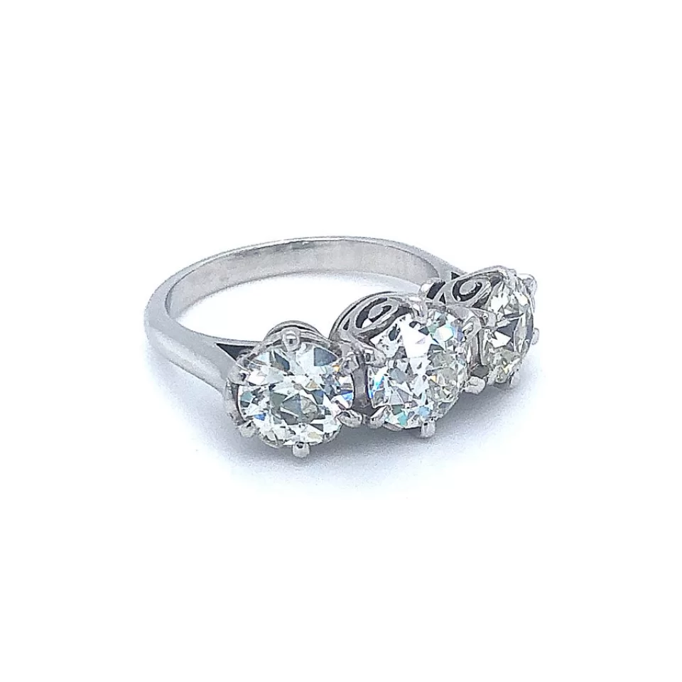 Art Deco Platinum 3 Diamond Ring, Centre Diamond 1.56ct. Side Diamonds 1.12ct and 1.05ct.