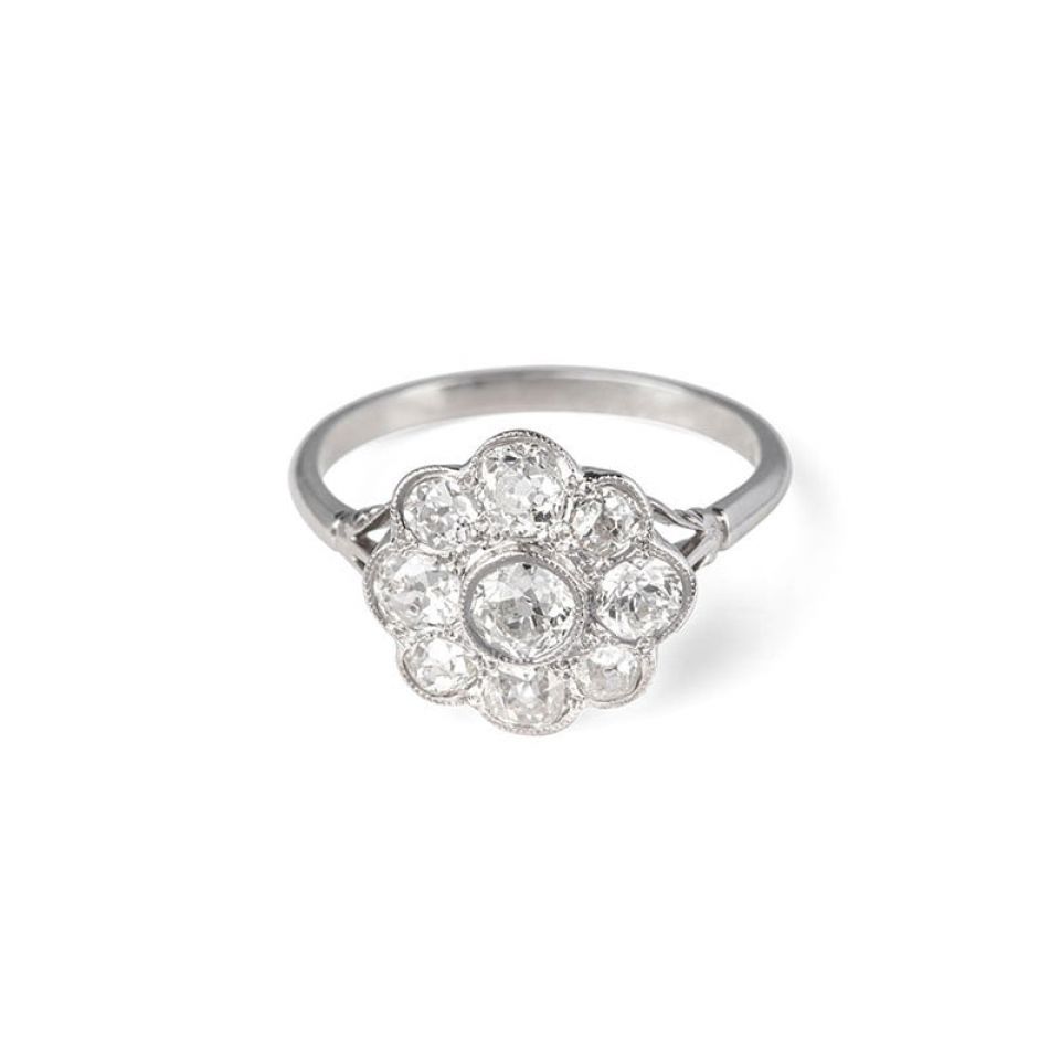 Art Deco Platinum Diamond Daisy Ring with Millgrain detailing circa 1920’s.