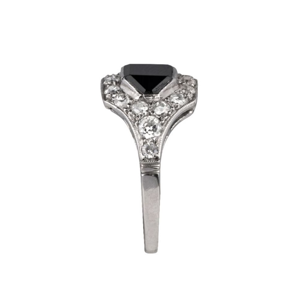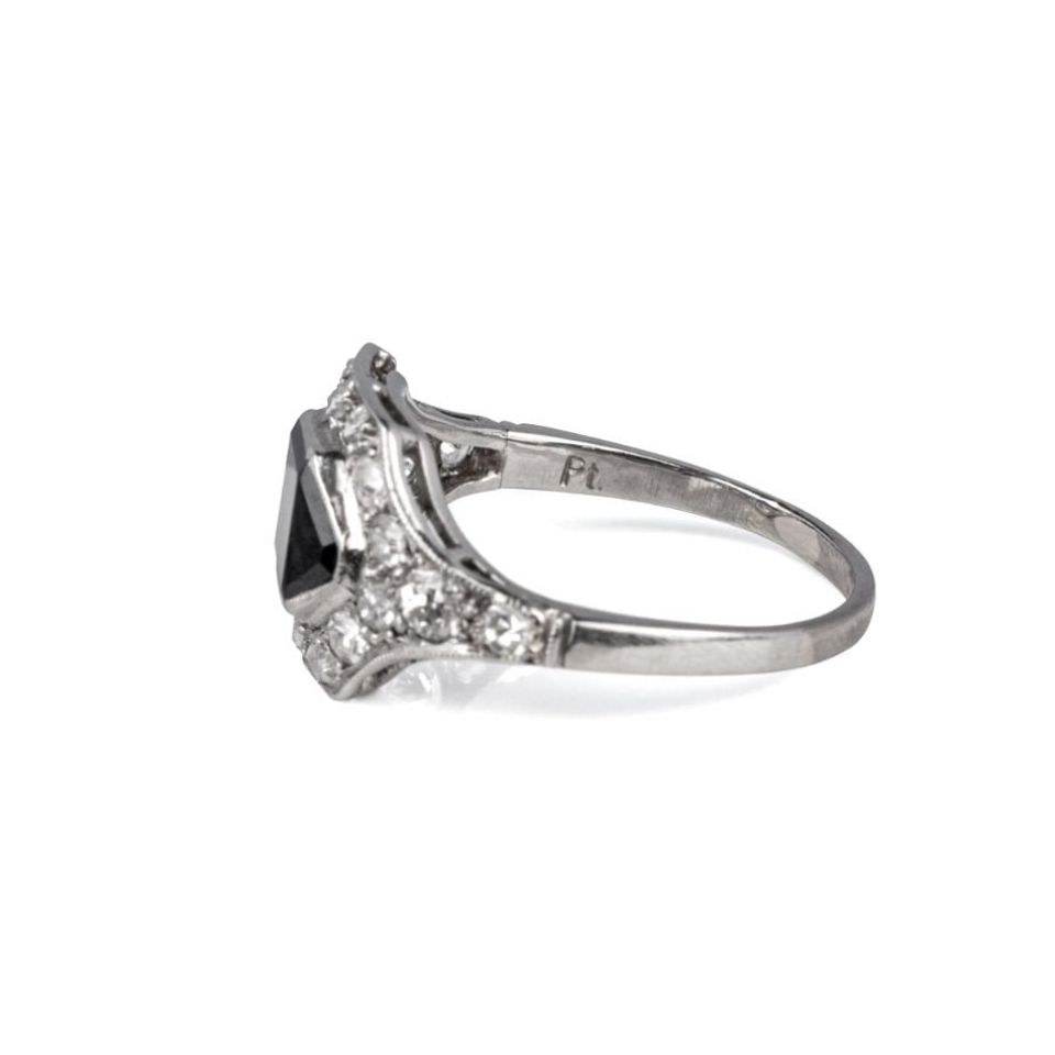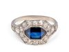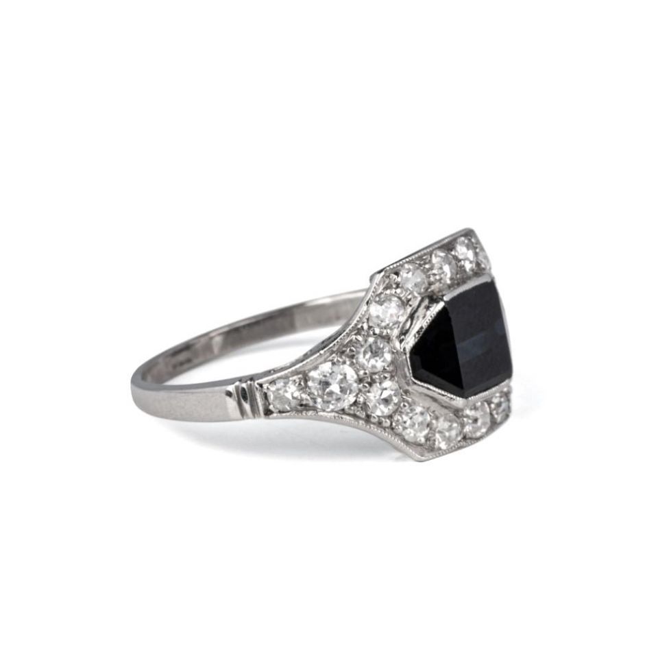 Art Deco Platinum Fancy Cut Sapphire and Diamond dress Ring with millgrain setting.