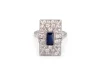 Original Art Deco 18ct White Gold Rectangle Sapphire and Diamond Ring c1940’s