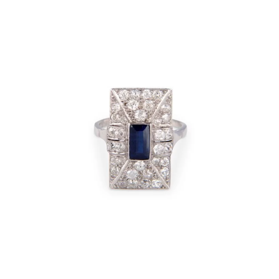 Art Deco 18ct White Gold rectangle Sapphire and Diamond Ring c1930-40’s.