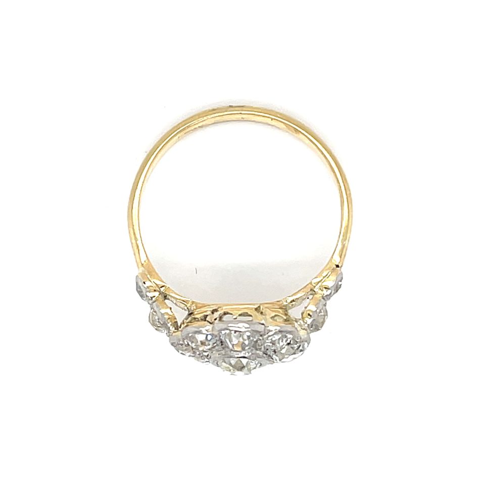 Handmade 18ct White & Yellow Gold Oval Diamond Daisy Cluster Ring C1930