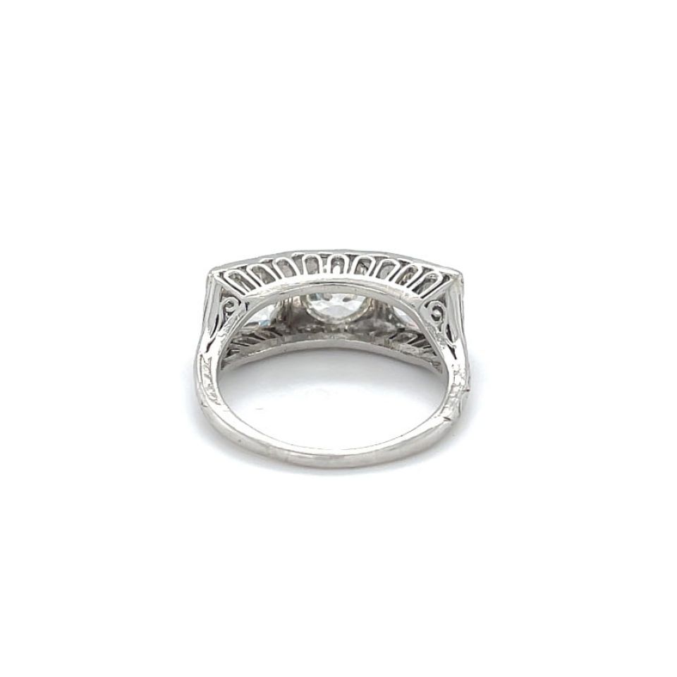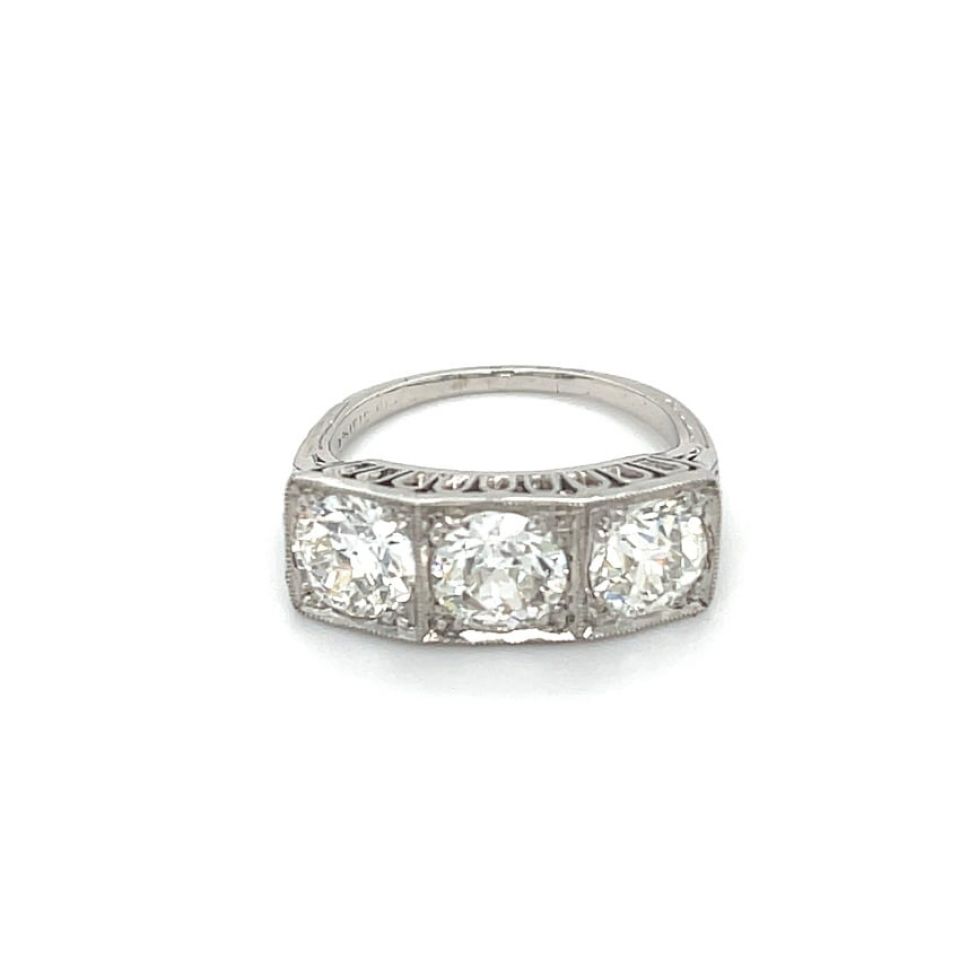 OriginalArt Deco Handmade Platinum 3 x Diamond ring with the diamonds triple claw set and then Mill grain square design.