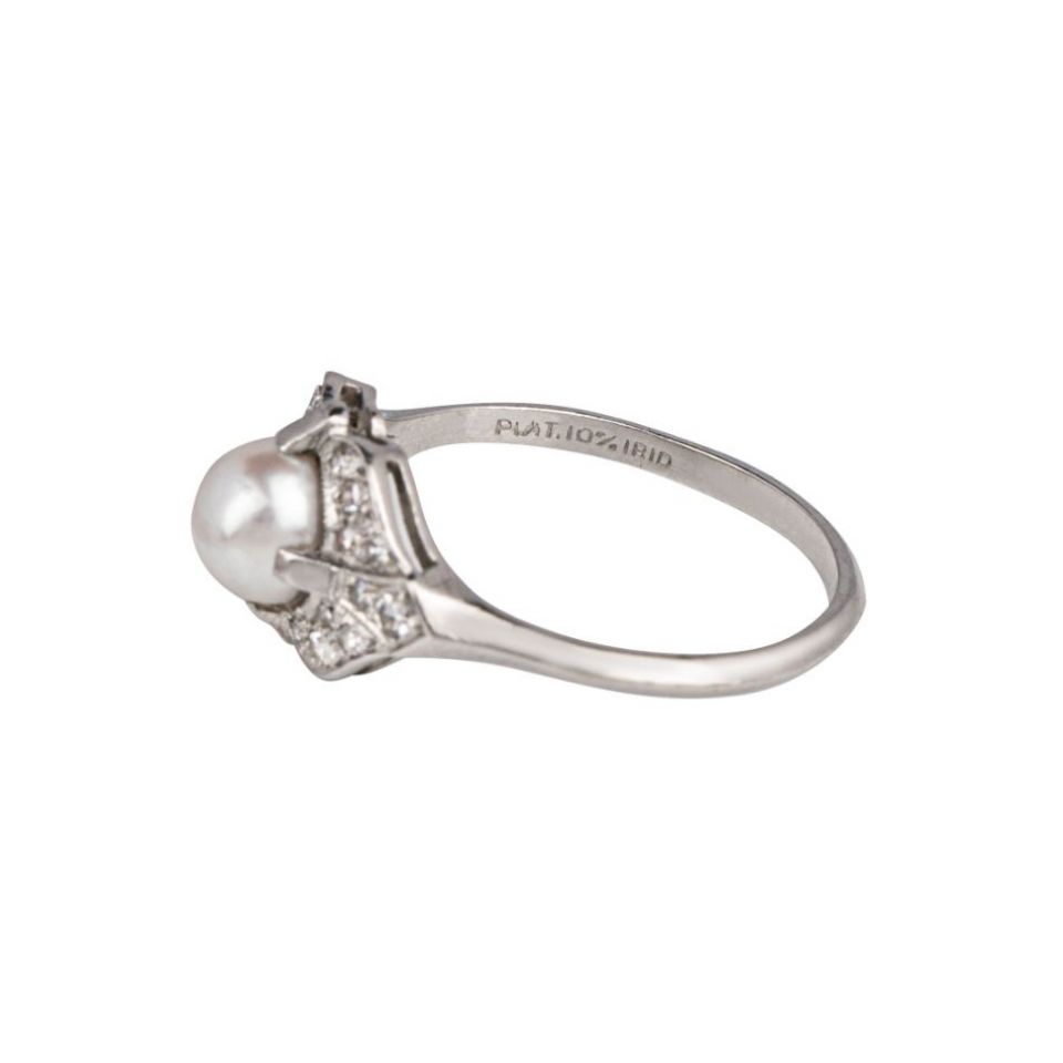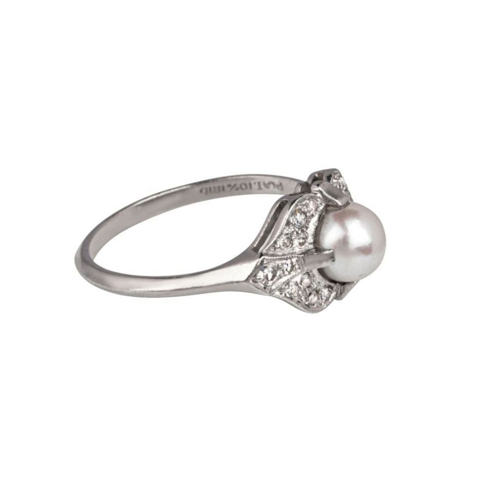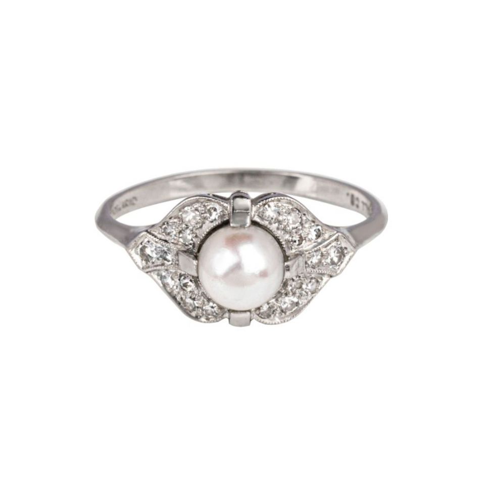 Original Art Deco Platinum, Akoya Pearl and Diamond Ring.