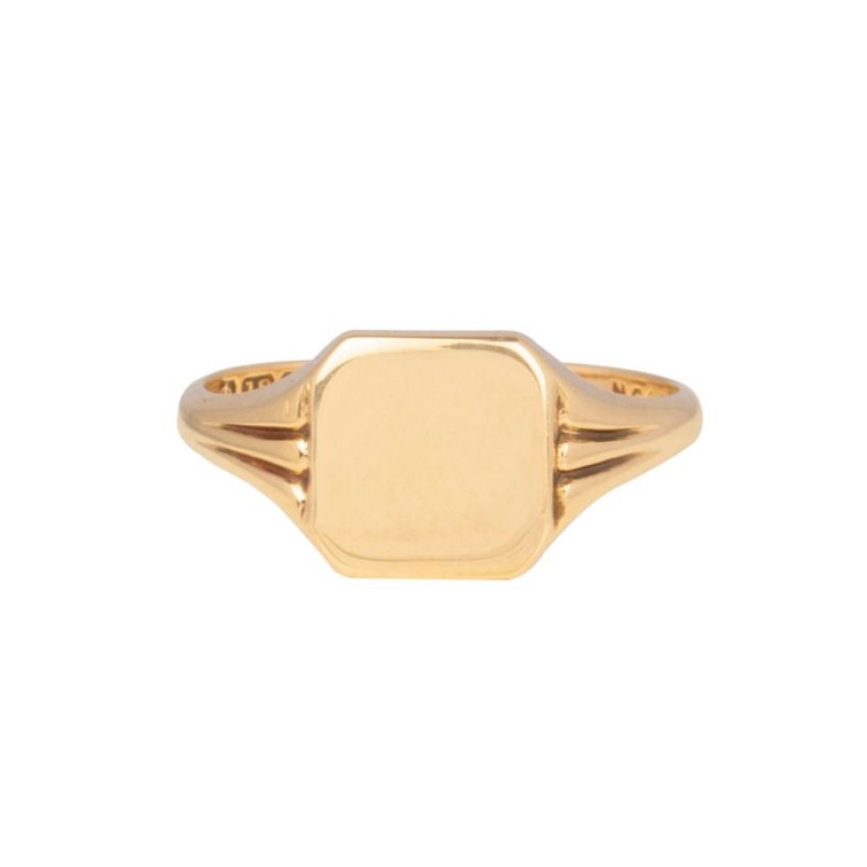 Original Art Deco 18ct Yellow Gold Signet Ring with a square set cartouche that can have either initials or a family crest engraved on it.