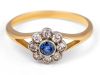 Art Deco 18ct Yellow Gold Sapphire And Diamond Daisy Cluster with split shoulder.