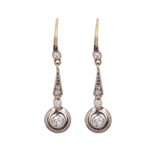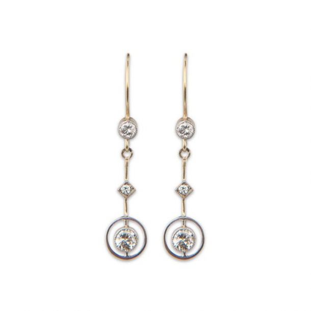ART DECO HANDMADE 14CT YELLOW GOLD & PLATINUM CIRCULAR DIAMOND DROPS