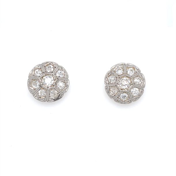 Art Deco Handmade 18ct White Gold Diamond Flower Cluster Earrings