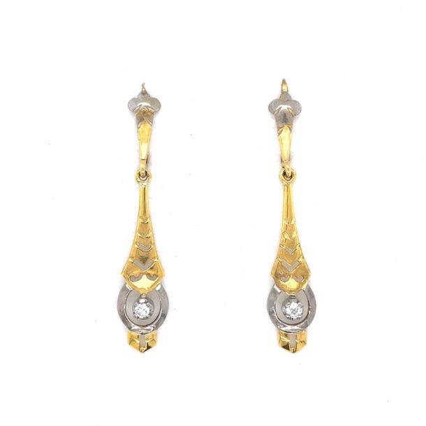 18ct Yellow & White Gold Diamond Drop Earrings