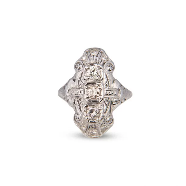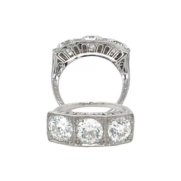 ORIGINALART DECO HANDMADE PLATINUM 3 X DIAMOND RING