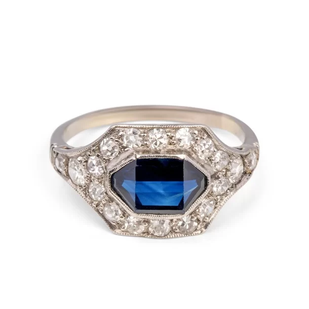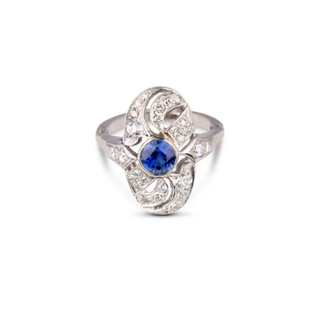 Art Deco Palladium Ceylonese Sapphire & Diamond Ring