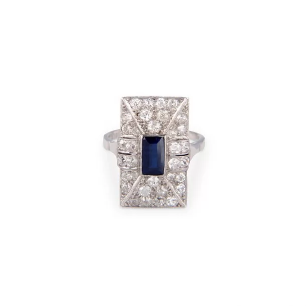 18ct White Gold Rectangle Sapphire & Diamond Ring c1940’s