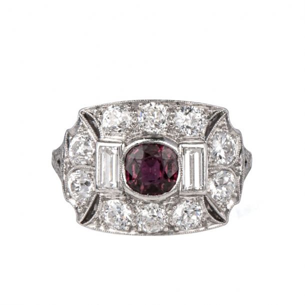 PLATINUM DIAMOND & RUBY SWIRL RING