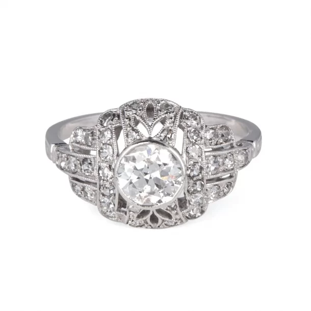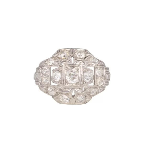 Platinum Original Art Deco Ring with Bead Set Diamonds