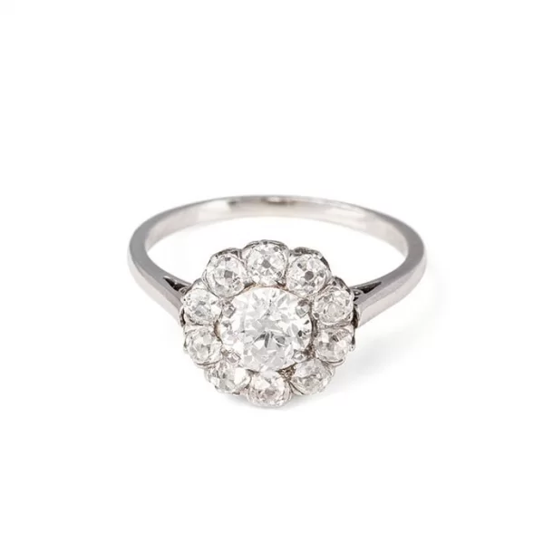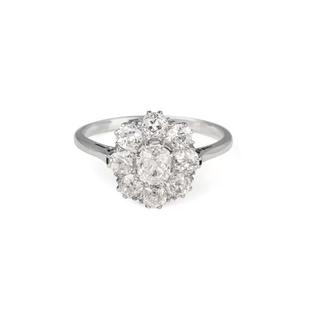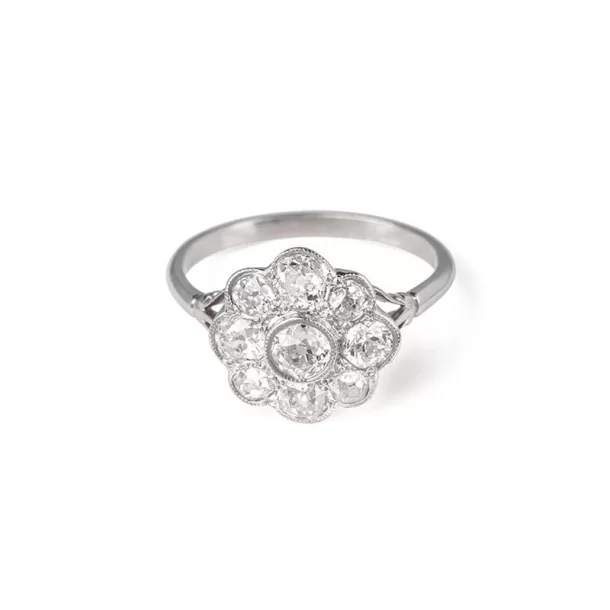 Platinum Art Deco Cluster Diamond Daisy Ring c1930