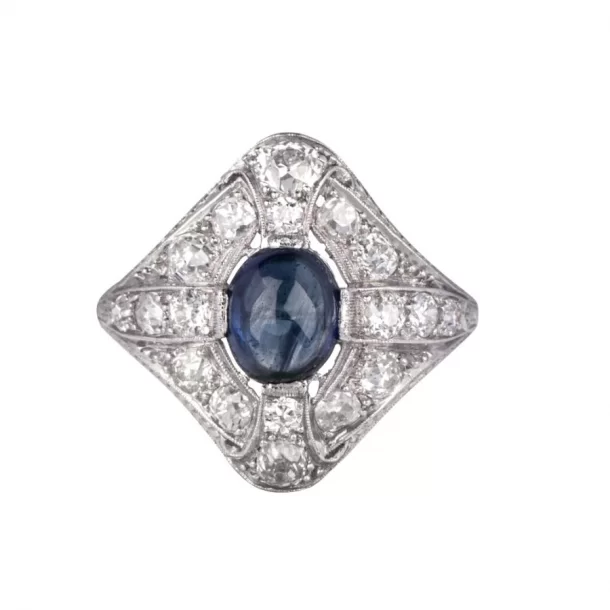 Art Deco Platinum Cabochon and Sapphire Diamond Cluster Ring