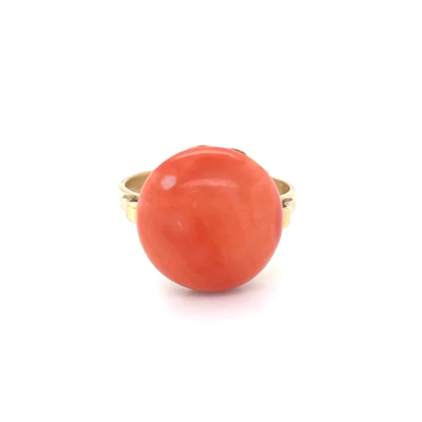 18ct Yellow Gold Bright Orange/Red Cabochon Coral Ring