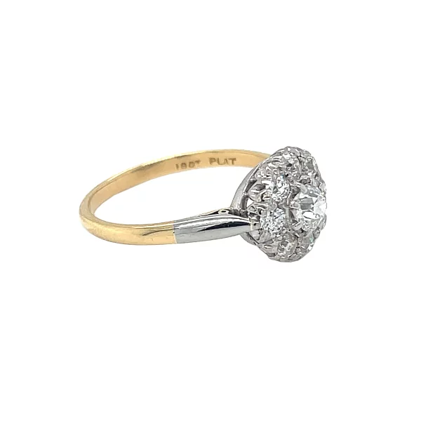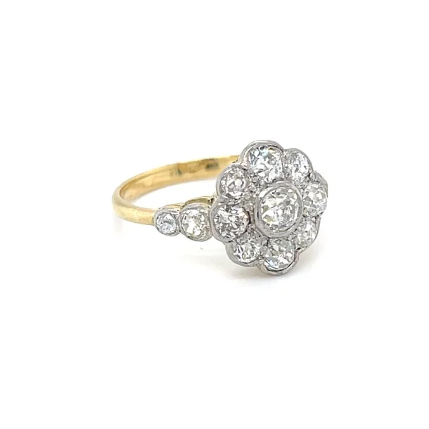18ct Yellow Gold & Platinum Old European Cut Diamond Daisy Cluster Ring