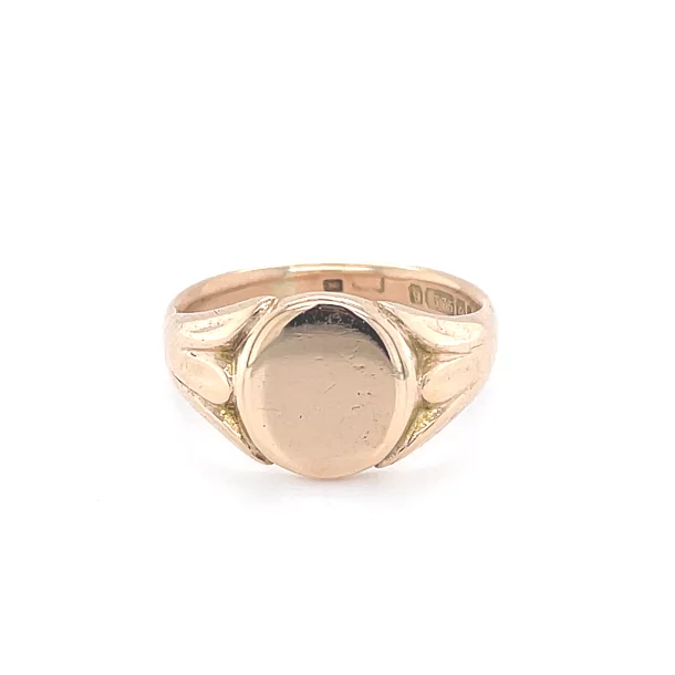 9ct Rose Gold Oval Signet Ring With Floral Shoulder Hallmarked Birmingham 1928