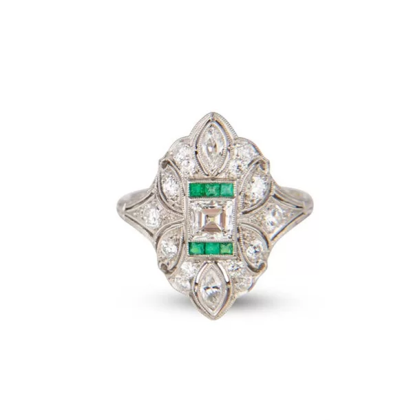 Art Deco Platinum Emerald & Diamond Plaque Ring
