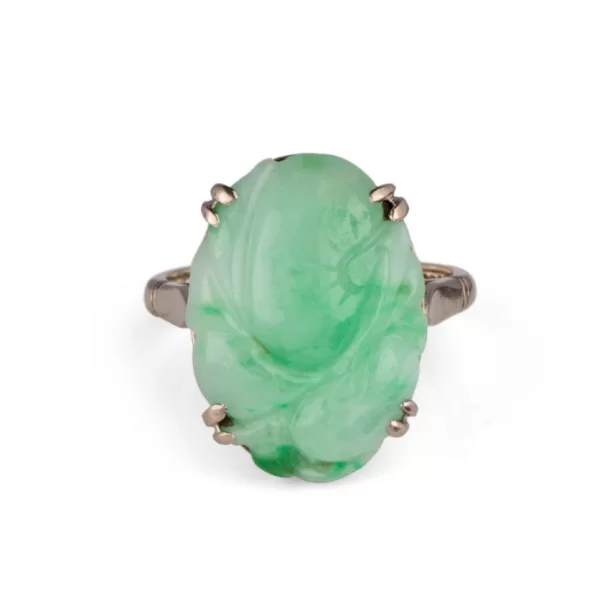 Art Deco 18ct White Gold Claw Set Carved Jade Ring